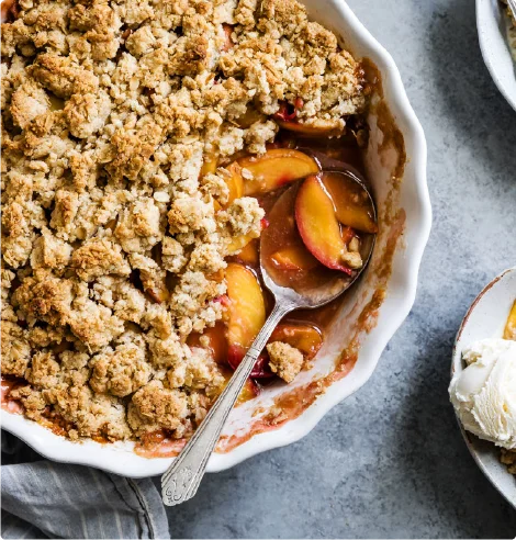 Corte os pêssegos em pequenos pedaços, coloque-os em um recipiente e acrescente o amido, o açúcar, a canela e o extrato de baunilha.